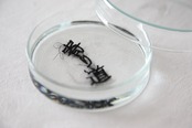 90mm∅ガラスシャーレの中にコトノハの欠片を樹脂で閉じ込めています。