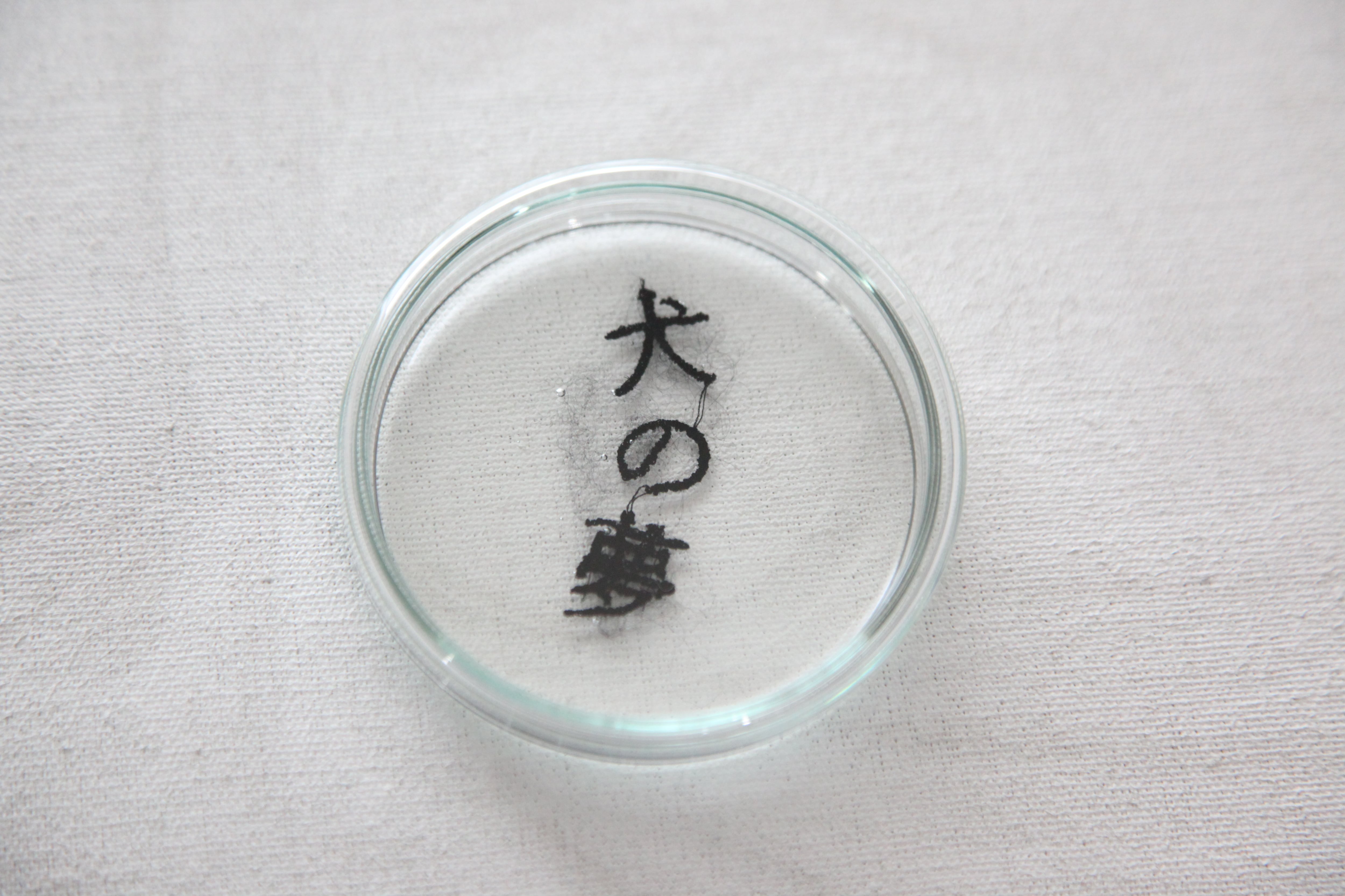 90mm∅ガラスシャーレの中にコトノハの欠片を樹脂で閉じ込めています。